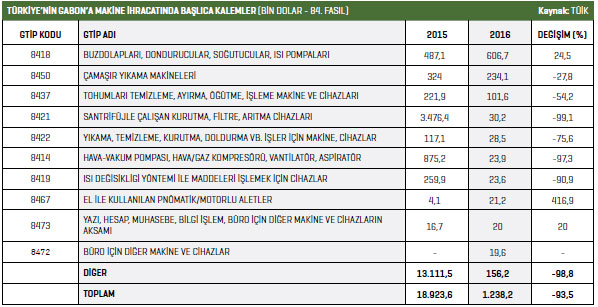 GABON 2016 YILINDA 13 MİLYON DOLARLIK MAKİNE İHRAÇ ETTİ