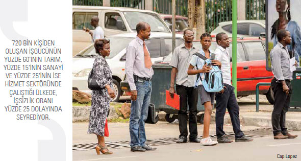 720 bin kişiden oluşan işgücünün yüzde 60’ının tarım, yüzde 15’inin sanayi ve yüzde 25’inin ise hizmet sektöründe çalıştığı ülkede işsizlik oranı yüzde 25 dolayında seyrediyor. Gabon’da yoksulluk etkin bir şekilde azaltılmaya çalışılsa da nüfusun üçte biri hala fakirlik sınırının altında yaşıyor.