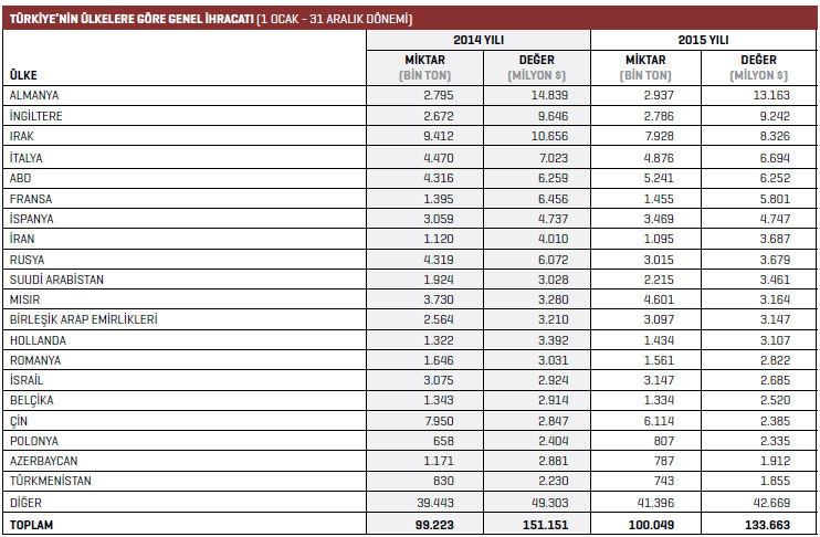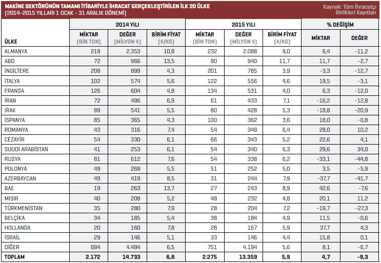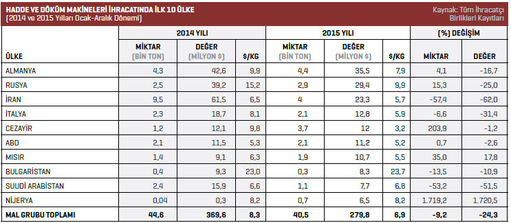 2015 yılının Ocak-Aralık döneminde Türkiye geneli hadde ve döküm makineleri sektöründe ihracat artışının en fazla yaşandığı ülke ise yüzde 1.720,5 ile Nijerya oldu.