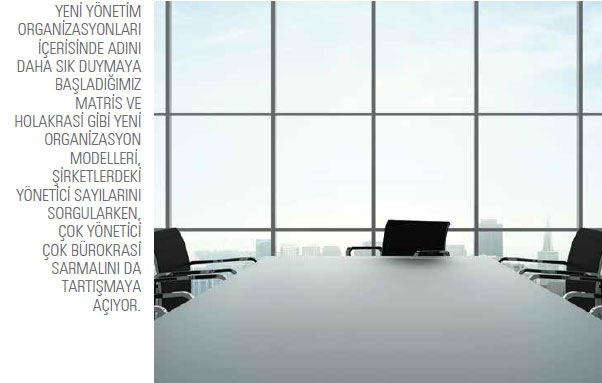 Daha az bürokrasi, daha az hiyerarşi, daha az yönetici, daha fazla uzman ve daha fazla yetkilendirme felsefesini içeren matris (iş birimlerinin kendi kararlarını alabildiği yönetim) ve holakrasi (çalışanların özerkliği/yöneticisiz yönetim) gibi yeni yönetim organizasyonlarında, yönetici unvanlı kişi oranı hızla gerilerken, kimi şirketler CEO’ya bağlı kademenin yanı sıra “yönetici” sınıfına girenlerin sayısını da azaltma yoluna gidiyor.