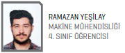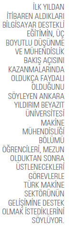 bölümünü seçtim. Ankara Yıldırım Beyazıt Üniversitesi Makine Mühendisliği Bölümü’nü tercih etmemde ise; yeni kurulmuş bir üniversite olmasına rağmen alanında uzman akademik kadrosunun verdiği eğitimle kendini ispatlaması, gelişmiş laboratuvar imkânlarıyla eğitimin daha çok uygulamaya yönelik yapılandırılması, eğitim dilinin İngilizce olması ve sanayi kuruluşlarının yoğun olduğu bir ilde bulunması etkili oldu. Özellikle eğitim dilinin İngilizce olması sayesinde dünya çapında kabul görmüş ders kitaplarını orijinal dillerinde okuyoruz. Ayrıca bölüm eğitmenlerimiz de bilgi ve deneyimlerini bizimle paylaşıyor. Bu çerçevede, bölümümüzün beklentilerimi karşıladığını söyleyebilirim. Otomasyon ve robotik alanında uzmanlaşmak istiyorum. Bunun için elektrik-elektronik mühendisliği bölümünde çift ana dal eğitimime devam ediyorum. Mezun olduktan sonra savunma sanayisi sektöründe çalışmak ve aynı zamanda lisansüstü çalışmalar yapmak istiyorum. Makine sektörü, bir ülkenin gelişmişliğinin en önemli göstergesidir. Türk makine sektörü de son yıllarda iyi bir gelişim seyri izliyor. Makine sektöründe faaliyet gösteren firmaların belli bölgeler dışında ülke geneline yayılması, Ar- Ge çalışmalarına daha fazla önem verilmesi ve mühendislik eğitimi alan öğrencilerin eğitim süreci içerisinde pratik bilgilerini artırabilmeleri açısından sektörde daha fazla bulunması gerektiğini düşünüyorum.”