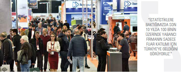 Öncelikle, fuarlar müşterilerle tedarikçileri buluşturan bir köprü vazifesi görüyor. İstatistiklere baktığımızda son 10 yılda 100 binin üzerinde yabancı firmanın sadece fuar katılımı için Türkiye’ye geldiğini görüyoruz. Bunun yanı sıra fuarlarımızda pek çok satın alma heyeti ağırlıyoruz. Uluslararası fuarlar Türkiye’nin ihracat artışına büyük etki ediyor.