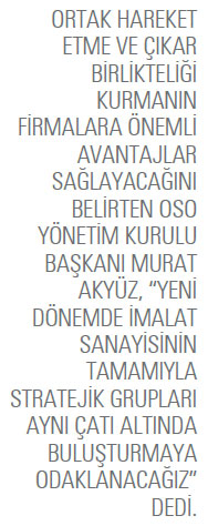 Türkiye’nin en hızlı büyüyen ve gelişen satın alma portföyüne sahip olan OSO, ortakları, üyeleri ve tedarikçileri arasında kurduğu kazan-kazan stratejisi ve geliştirdiği yeni projeleri ile sektöre hizmet veriyor. Makine İhracatçıları Birliğinin (MAİB) öncülüğünde kurulan OSO’nun 500 üyesi bulunuyor. Mayıs ayındaki Olağan Genel Kurulda Yönetim Kurulu Başkanlığına seçilen Murat Akyüz, organizasyonun yapısı ve çalışmalarıyla ilgili bilgi verdi. Akyüz, yeni döneme yönelik projelerini ve OSO’nun geleceğine ilişkin öngörülerini de paylaştı.