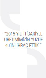 2015 yılında üretim kapasitemizi artıramadık. Bunun nedeni de mevcut tesisimizin yetersizliği. 2016 yılında öncelikli amacımız mevcut kapasitemizi korumak olacak. Tesis yetersizliği sorunumuzu çözdüğümüzde kapasitemizi en az yüzde 40 oranında artırmayı planlıyoruz.