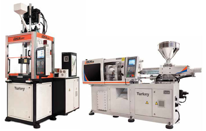 Ekin Makina olarak seri olarak 30 tondan 600 tona yatay ve 35 tondan 300 tona kadar da dikey enjeksiyon (sabit tabla, döner tabla çift istasyon, kayar tabla çift istasyon ve öne kayar tabla tek istasyon) grupları ile isteğe bağlı üniteler ve makineler üretebilme kabiliyetine sahibiz. Makinelerimizde enerji tasarruf sistemlerini uyguluyoruz. Enerjinin pahalı olduğu günümüzde yüzde 50’yi aşan bir oranda enerji tasarrufu sağlıyoruz. Ayrıca bilgisayarla paralel robotla çalışma seçenekleri de mevcut. Üretim hattımızda da yüksek teknolojili son model yatay işlem merkezli makineler kullanıyoruz.