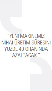 Firmamız açısından 2015 yılının ilk altı aylık dönemi, üretim ve sipariş adedi bakımından oldukça verimli geçti. Yılın ikinci yarısında ülkemizde ve dünyada yaşanan siyasi ve ekonomik gelişmeler her sektörü olumsuz olarak etkiliyor. Halihazırdaki durum özellikle yeni yatırımların durmasına veya yavaşlamasına sebebiyet veriyor. Umuyorum ki yakın bir gelecekte bu dengeler yerli yerine oturacak ve işlerimiz tekrar aynı seyrine dönecektir. Bu çerçevede 2015 yılı sonunda yüzde 55’lik bir ciro artışı öngörüyoruz. Mevcut siparişlerimizle şu anda 2015 senesini kapattığımızı ve 2016 yılı ürün teslimleriyle ilgili çalışmalarımızı sürdürdüğümüzü söyleyebilirim.