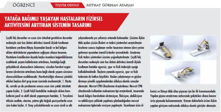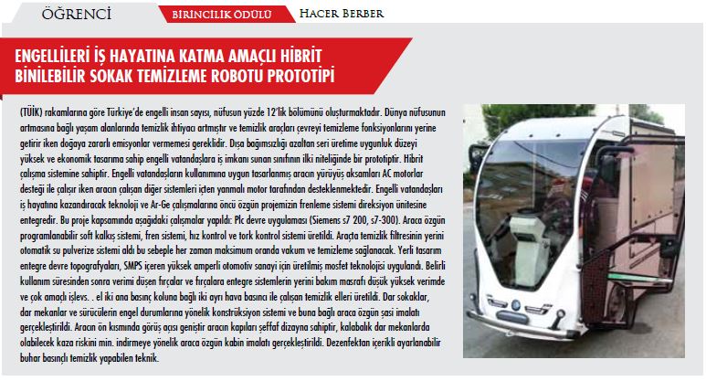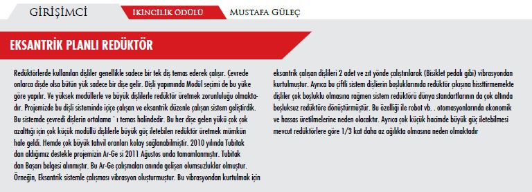 Aksamları İmalat Teknolojileri Ar-Ge Proje Pazarı” etkinliğinin bu yıl ikincisi düzenlendi. 26 Ekim’de İstanbul Otel ve Kongre Merkezi’nde TÜBİ-TAK-TEYDEB ve TİM’in desteğiyle gerçekleştirilen, makine sektörüne yönelik bilimsel projeleri ilgili kişi ve kuruluşlar ile buluşturan bu yılki etkinlikte 303 proje yarıştı. Bağımsız üyelerden oluşan “Ödül Seçici Kurulu” tarafından yapılan